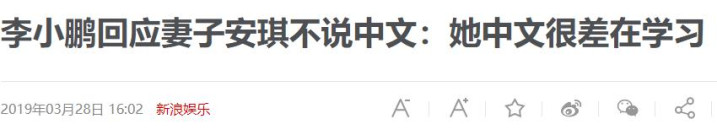 新浪娱乐《李小鹏回应妻子安琪不说中文:她中文很差在学习》