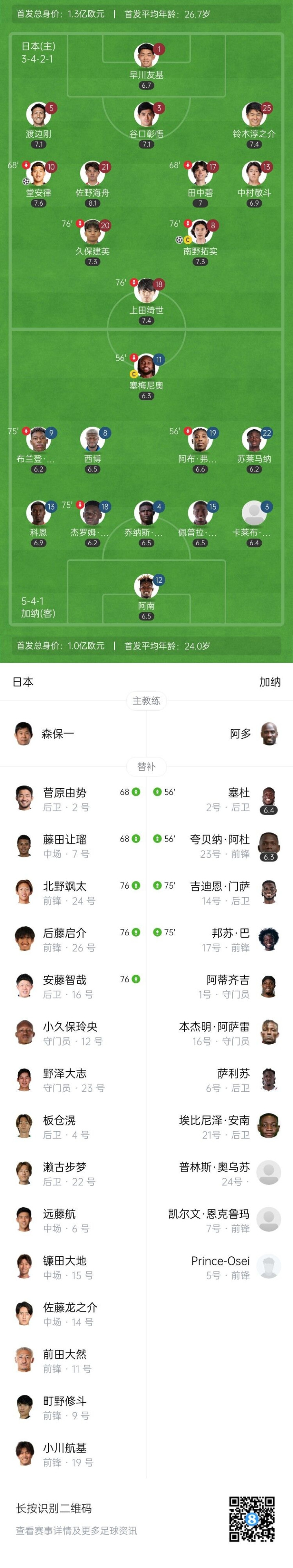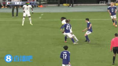 伤停补时3分钟。全场比赛结束,日本2-0加纳。