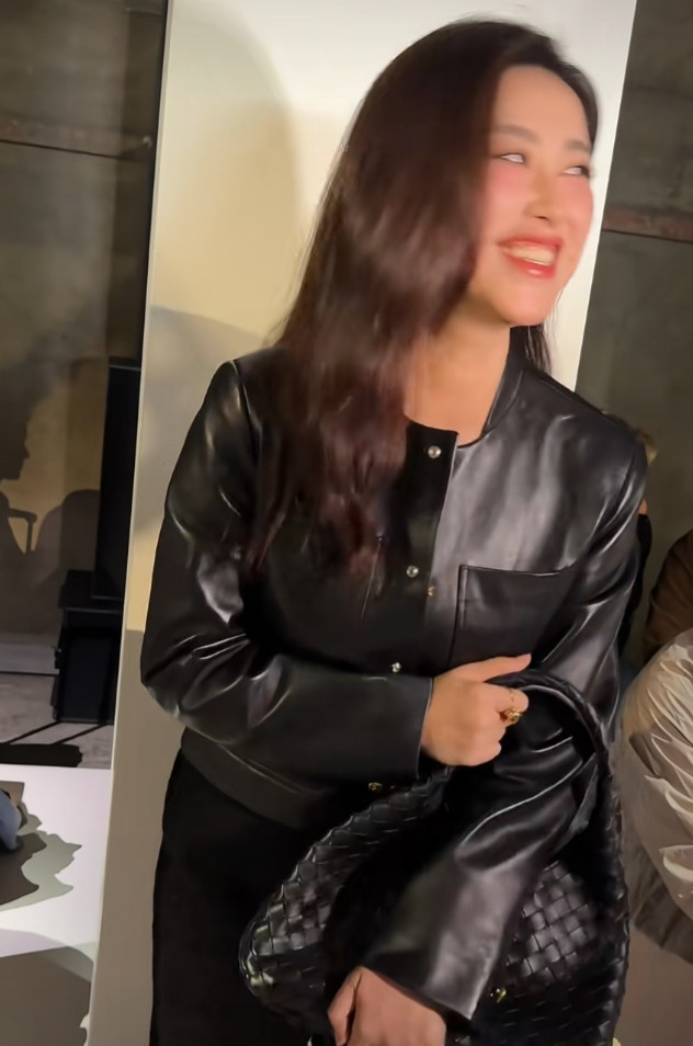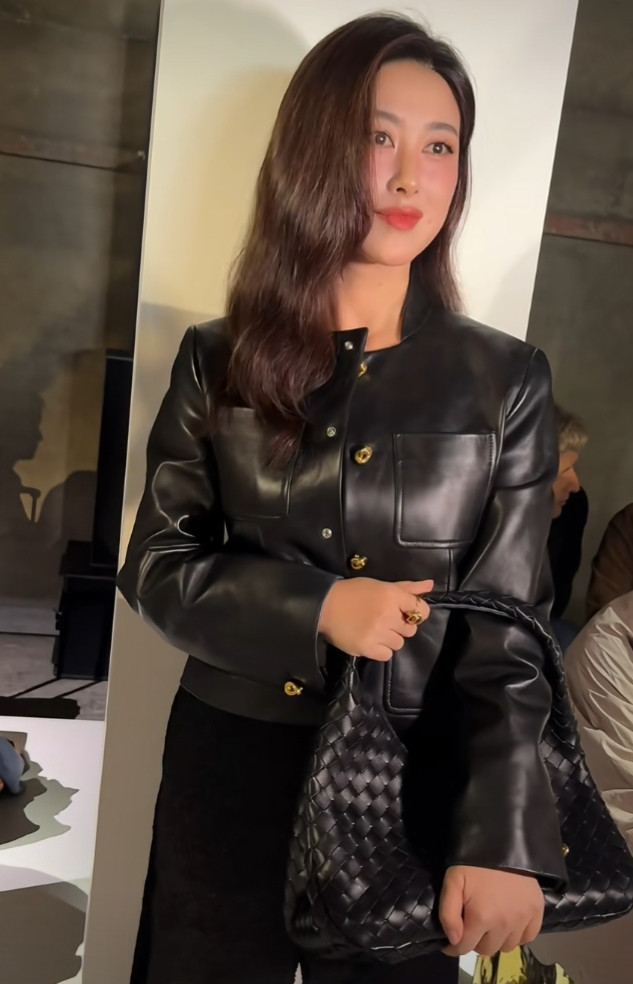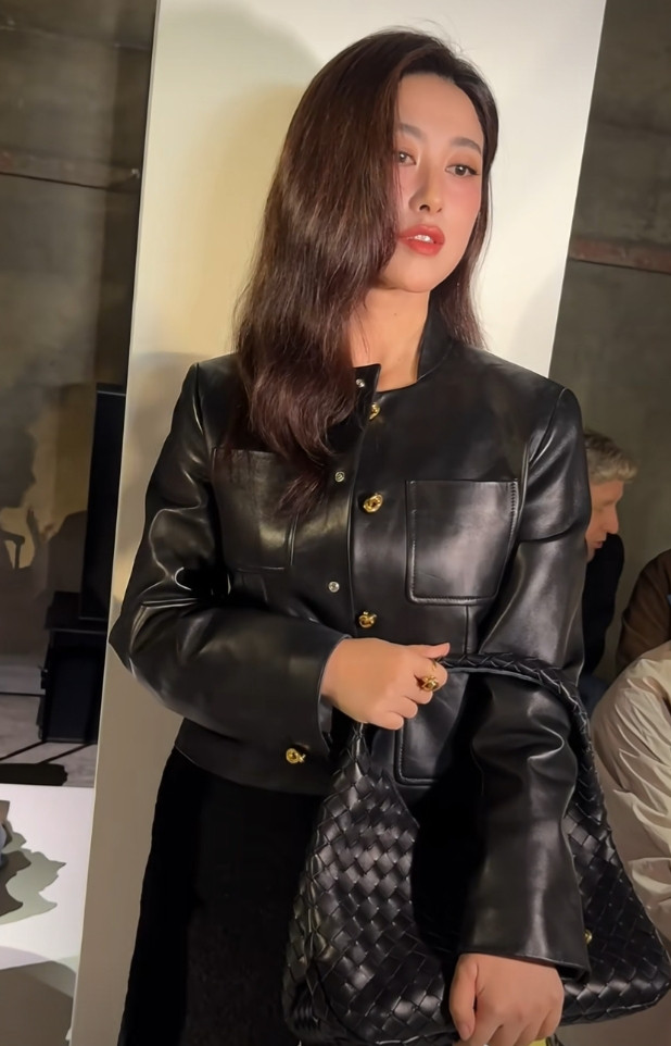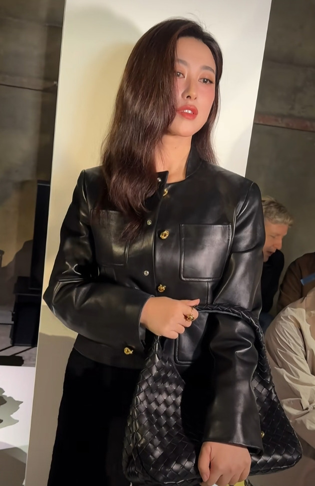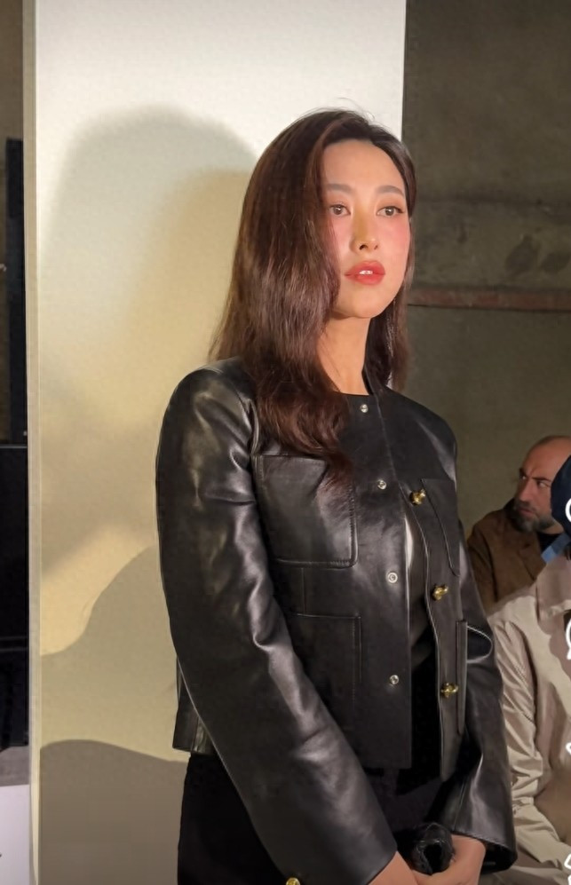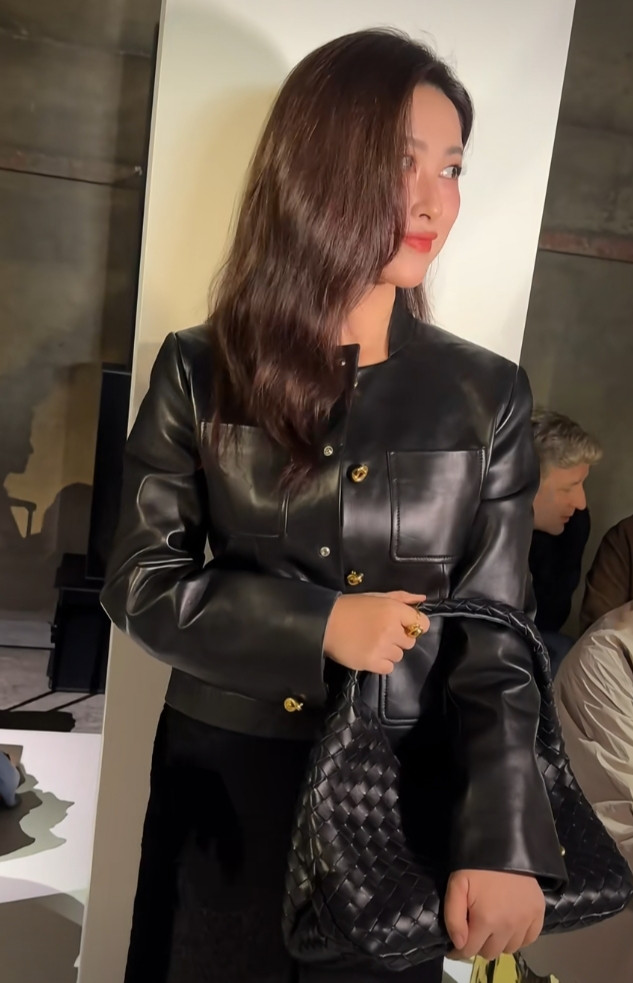 米兰时装周高光时刻, 朱珠BV黑色皮衣造型, 41岁状态碾压全场