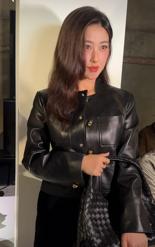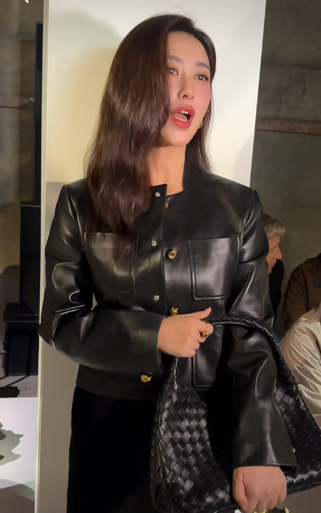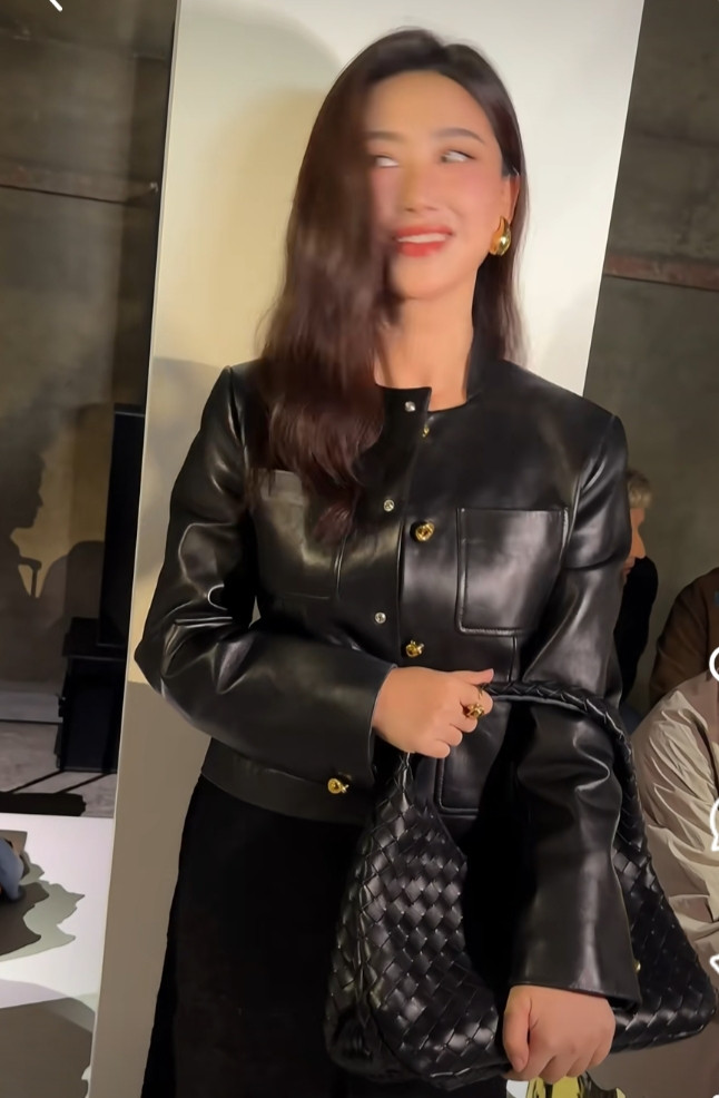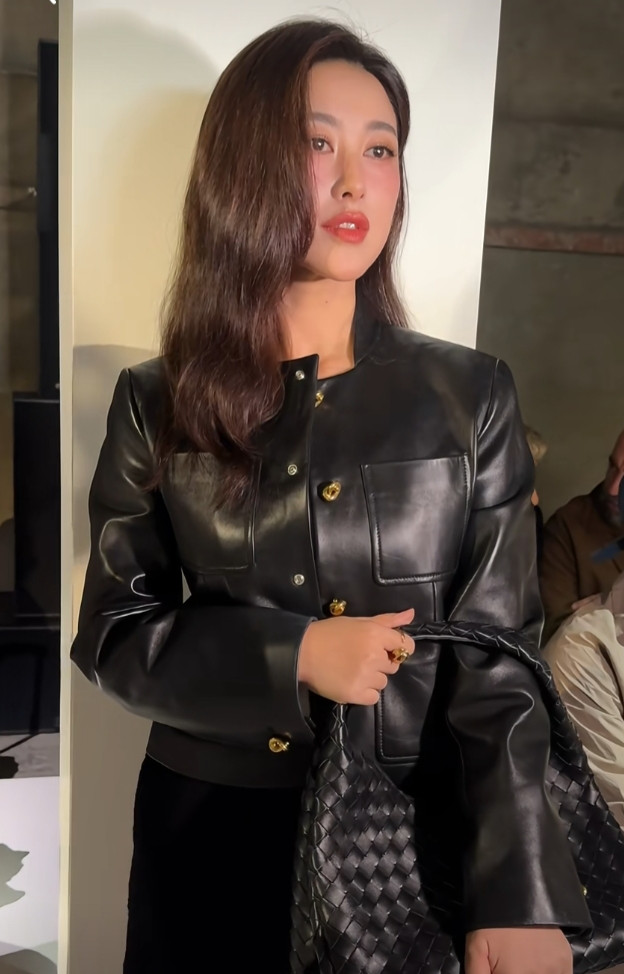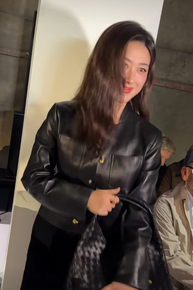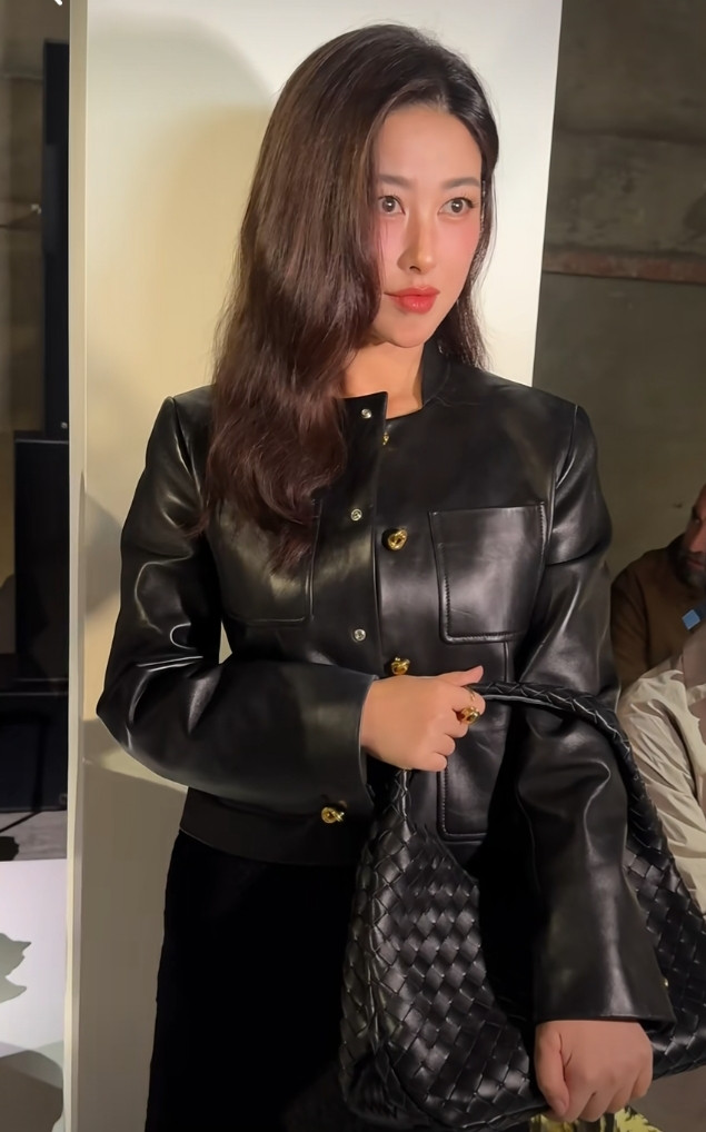 米兰时装周高光时刻, 朱珠BV黑色皮衣造型, 41岁状态碾压全场