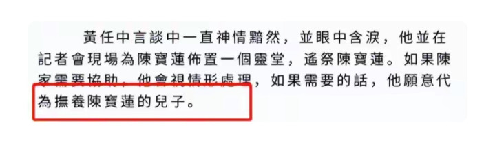 陈宝莲的干爹黄任忠也提出,如果有需要,会领养陈宝莲的儿子。