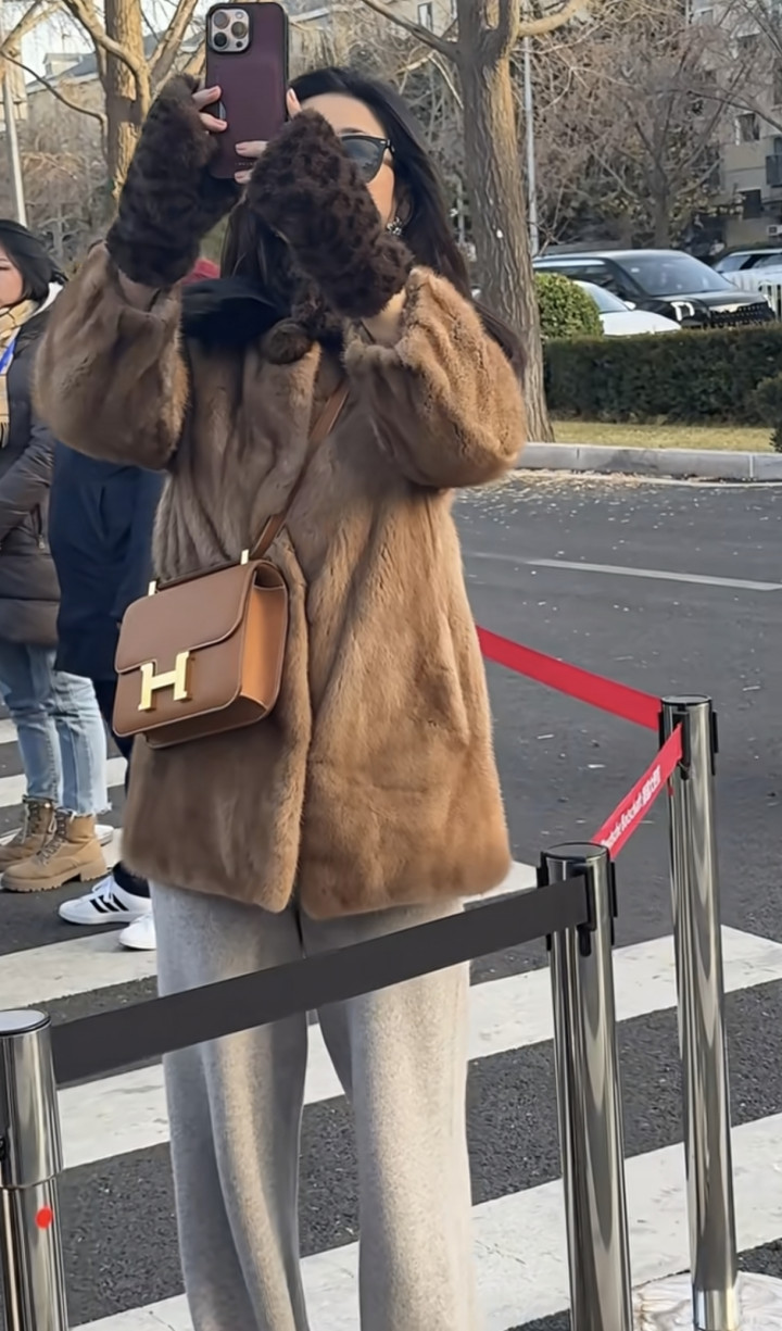 她身上背着的包包和穿着的皮草外套,也让大家成功种草,包是来自爱马仕的,价值16W,外套是中古的,怕是买不到同款了!